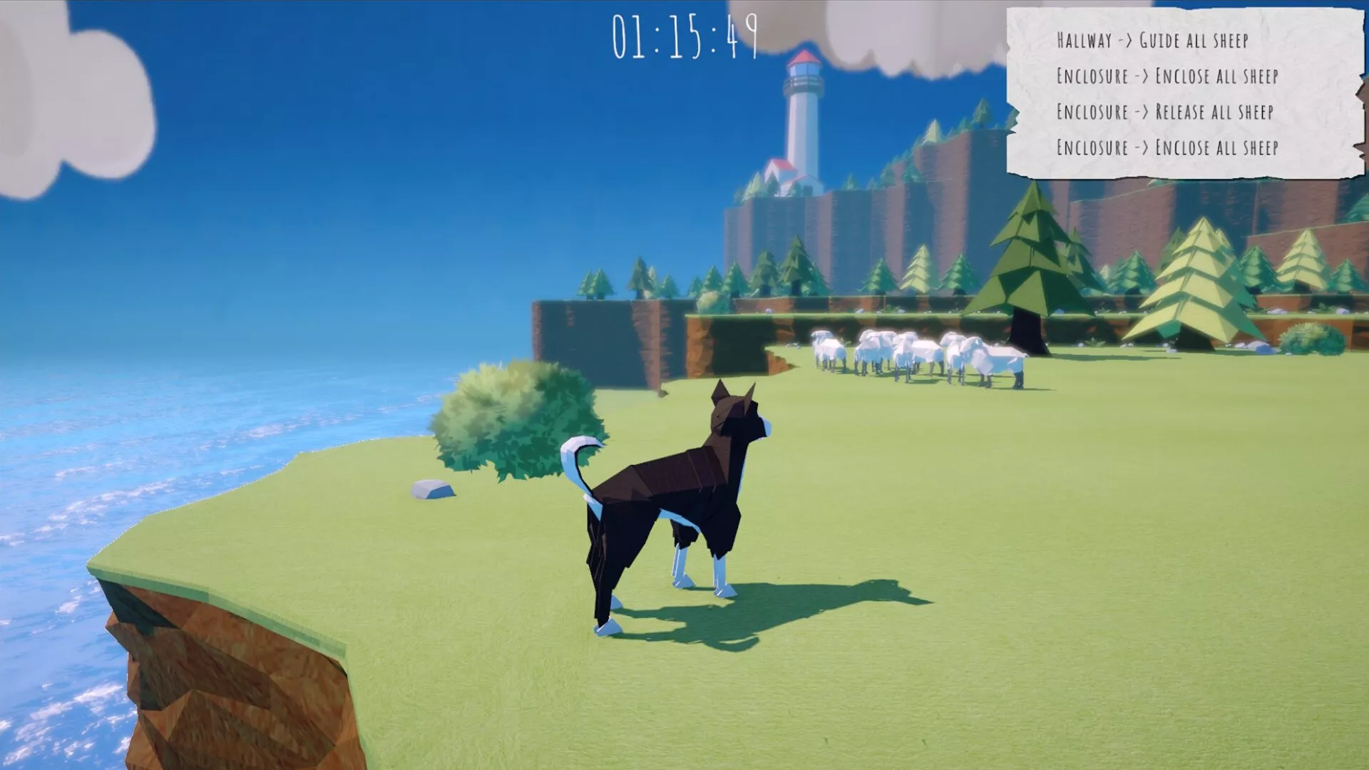 En Atura, controlas a un perro pastor desde una perspectiva en tercera persona, con unos controles sencillos e intuitivos. No hay una curva de aprendizaje pronunciada: sólo tienes que moverte, colocarte estratégicamente y guiar con cuidado al rebaño a través de cada recorrido.