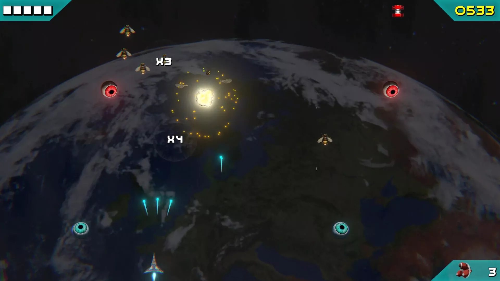 Jefes: Pon a prueba tu habilidad contra poderosos jefes alienígenas que exigen la más alta agilidad para esquivar sus ataques.