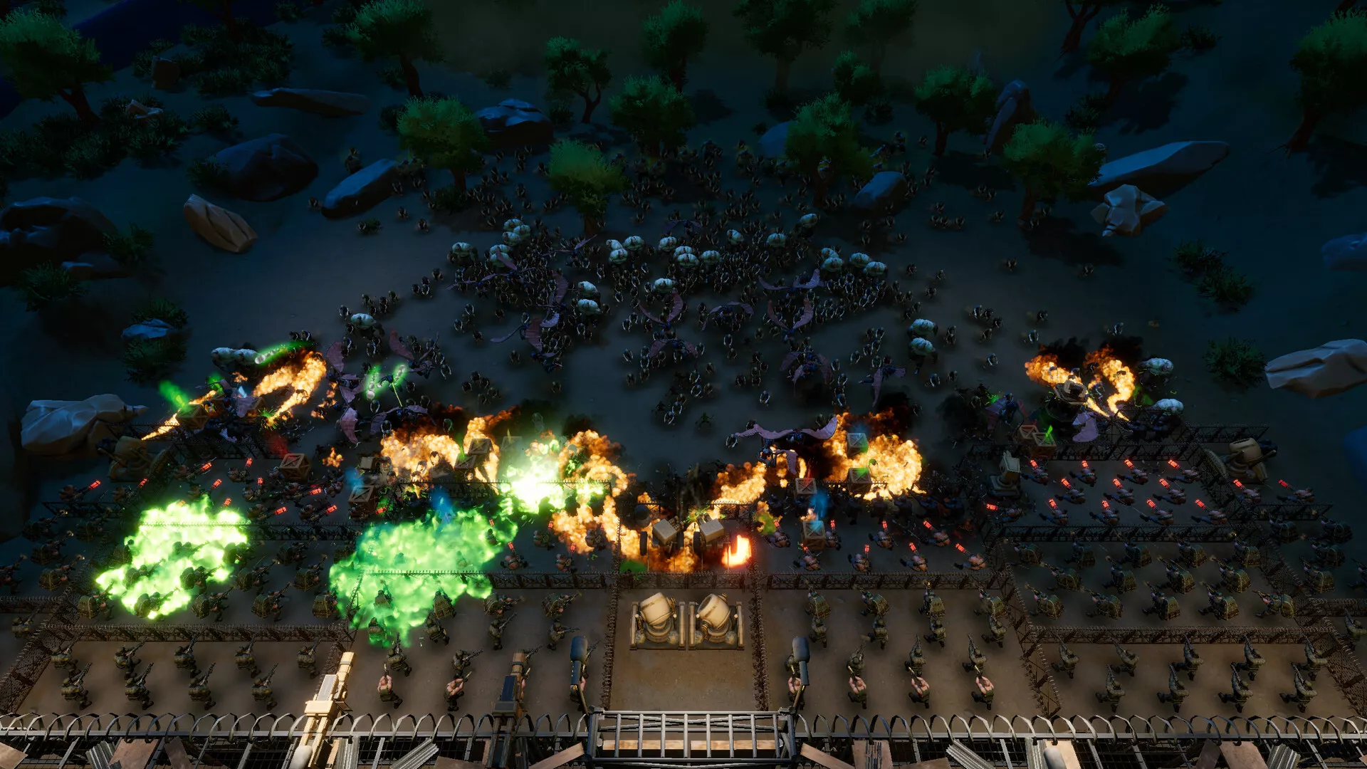 Cuando cae la noche, tus decisiones son puestas a prueba. Las defensas construidas durante el día deberán resistir las oleadas de zombis. Usa el apoyo aéreo en el momento adecuado y controla ciertas unidades en tiempo real para dirigir el ataque. Adapta tu estrategia en cada oleada.