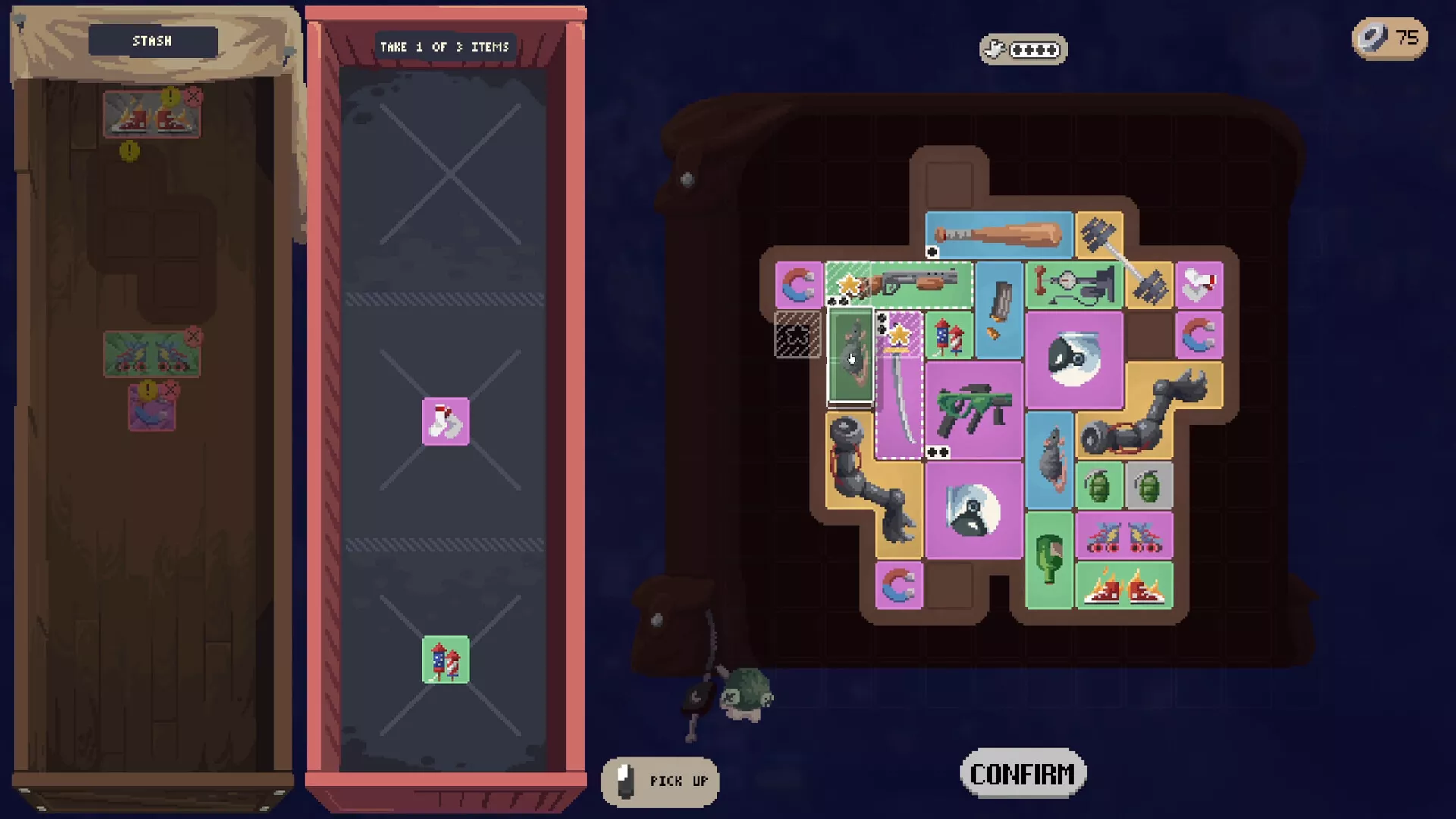 ¿Serás capaz de hallar el mejor botín? Tu espacio de equipaje será más bien limitado. Después de rapiñar el botín más tocho del mundo mundial, tendrás que meterlo en tu macuto de chichinabo. Como todo excursionista por carretera que se precie, tendrás que hacer encaje de bolillos a la hora de empacar.