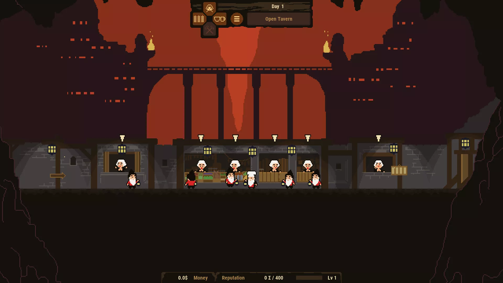 En Dwarf Tavern, cada día se divide en dos fases: