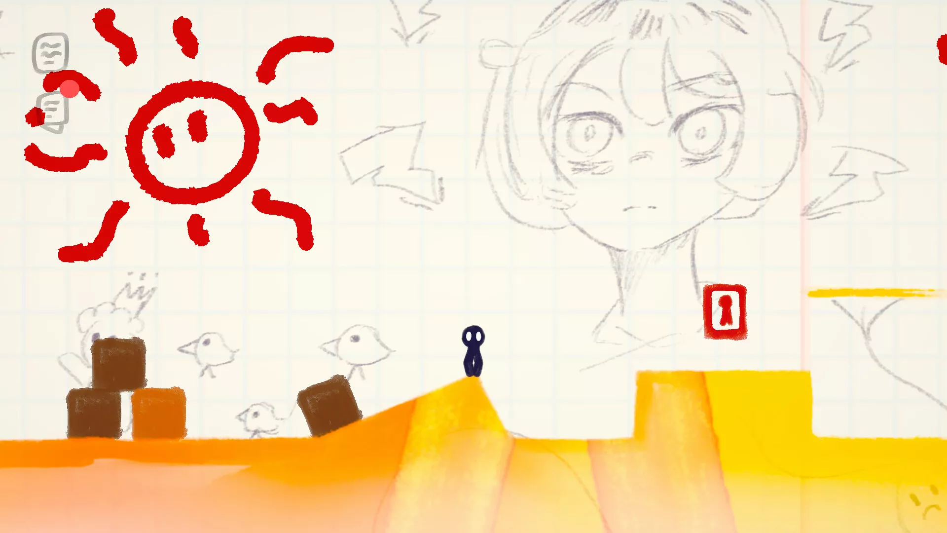 Controlas a un pequeño personaje que atraviesa mi cuaderno, página tras página.
