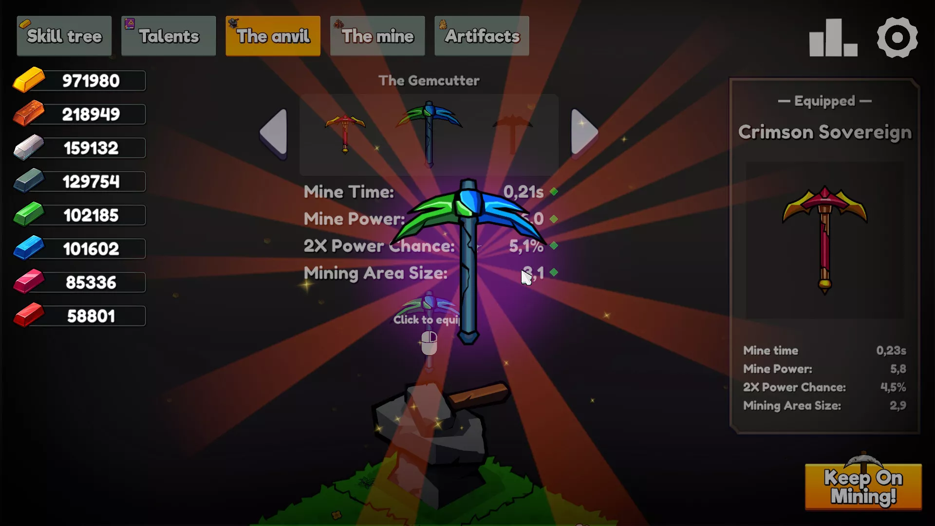 Keep on Mining! es un juego incremental sencillo. Pasa el cursor sobre las rocas para extraerlas automáticamente. Cualquier roca dentro del área de minería generará picos que minan por ti.