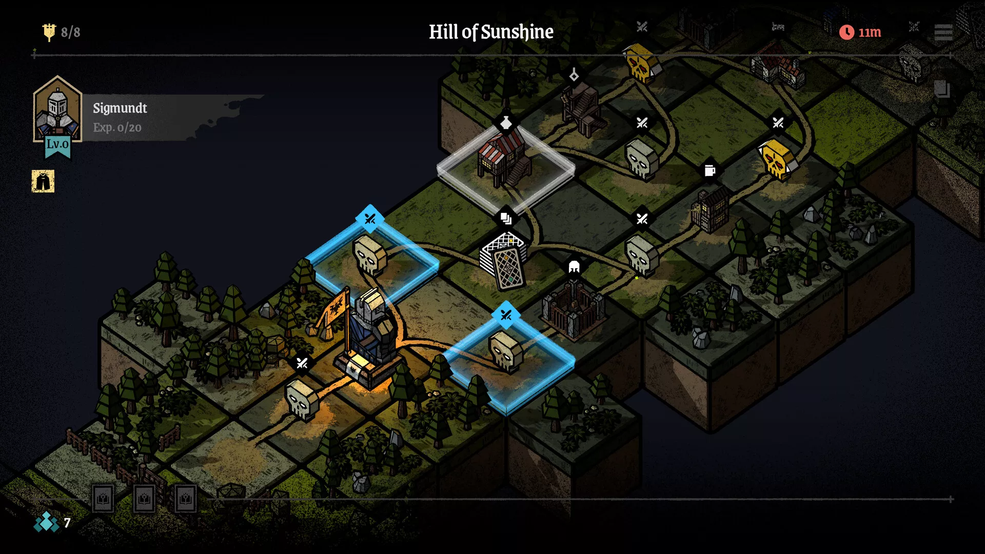 Visita los distintos edificios de cada región para fortalecer tu equipo antes de enfrentarte a enemigos poderosos. Combina rasgos, despide mercenarios innecesarios y compra reliquias y objetos para prepararte para los próximos combates.
