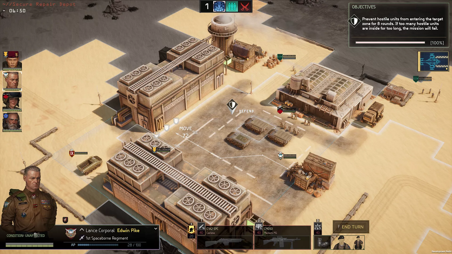Vigila el alcance efectivo de tus armas, su daño de acuerdo con la distancia y su utilidad contra enemigos ligeros o blindados. Incluso más allá del alcance ideal, todos los disparos afectan un poco al pelotón más cercano, sea o no el objetivo que tenías en mente, sin importar que sea aliado o enemigo. El armamento pesado es más propenso a intimidar al enemigo que las armas pequeñas, por lo que podrás adaptarte al enfoque que quieras tirando del arsenal disponible. Estudia al enemigo para decidirte entre usarlos de diana con tus francotiradores o emplear fuego de cobertura y recortar distancias con tus tropas.