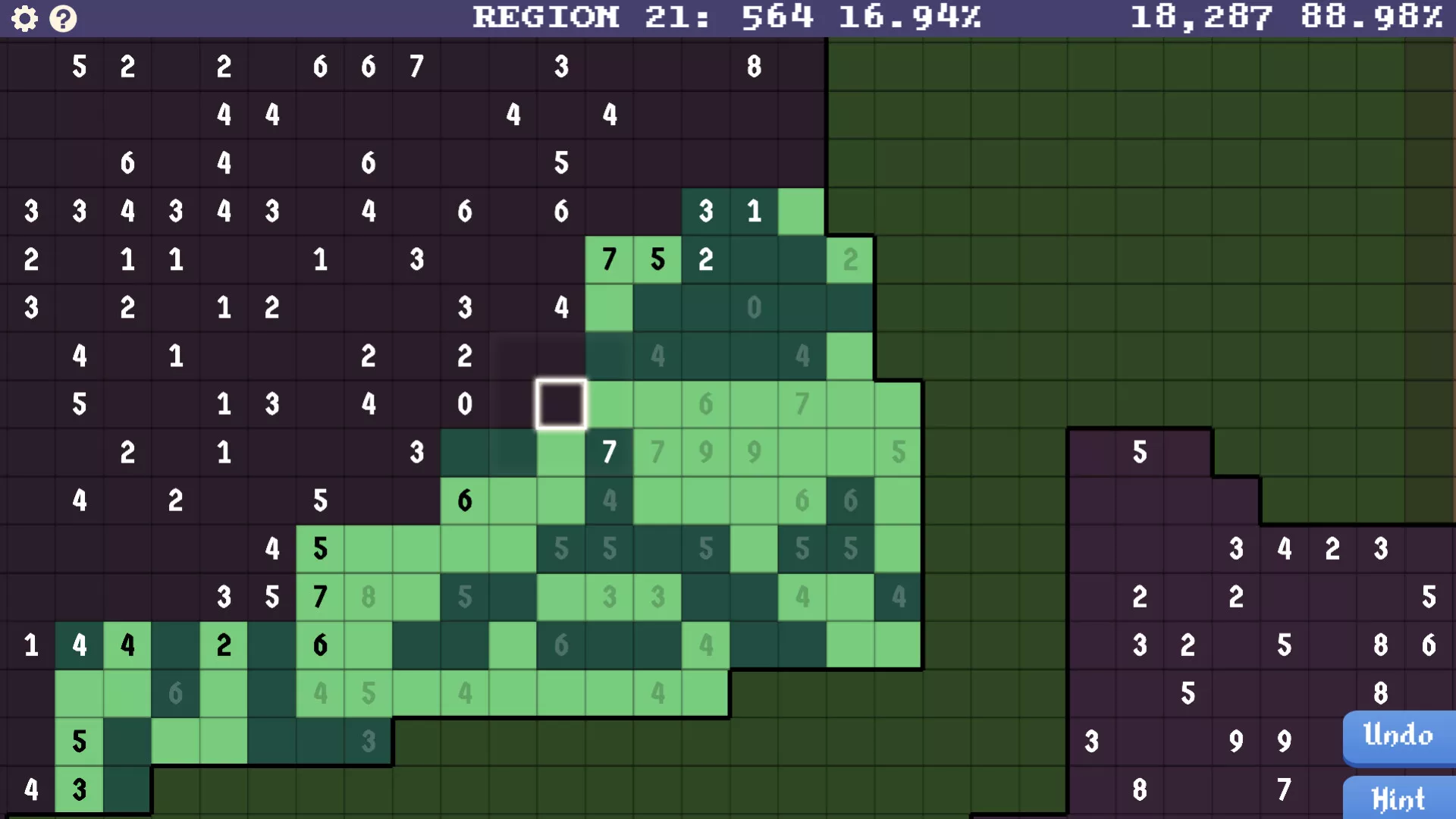 ? ¡Si sabes cómo jugar Buscaminas, ya sabes cómo jugar un juego de Mosaico! Las pistas numeradas (0-9) indican cuántas fichas claras deben colocarse dentro de 1 cuadrado de la pista.