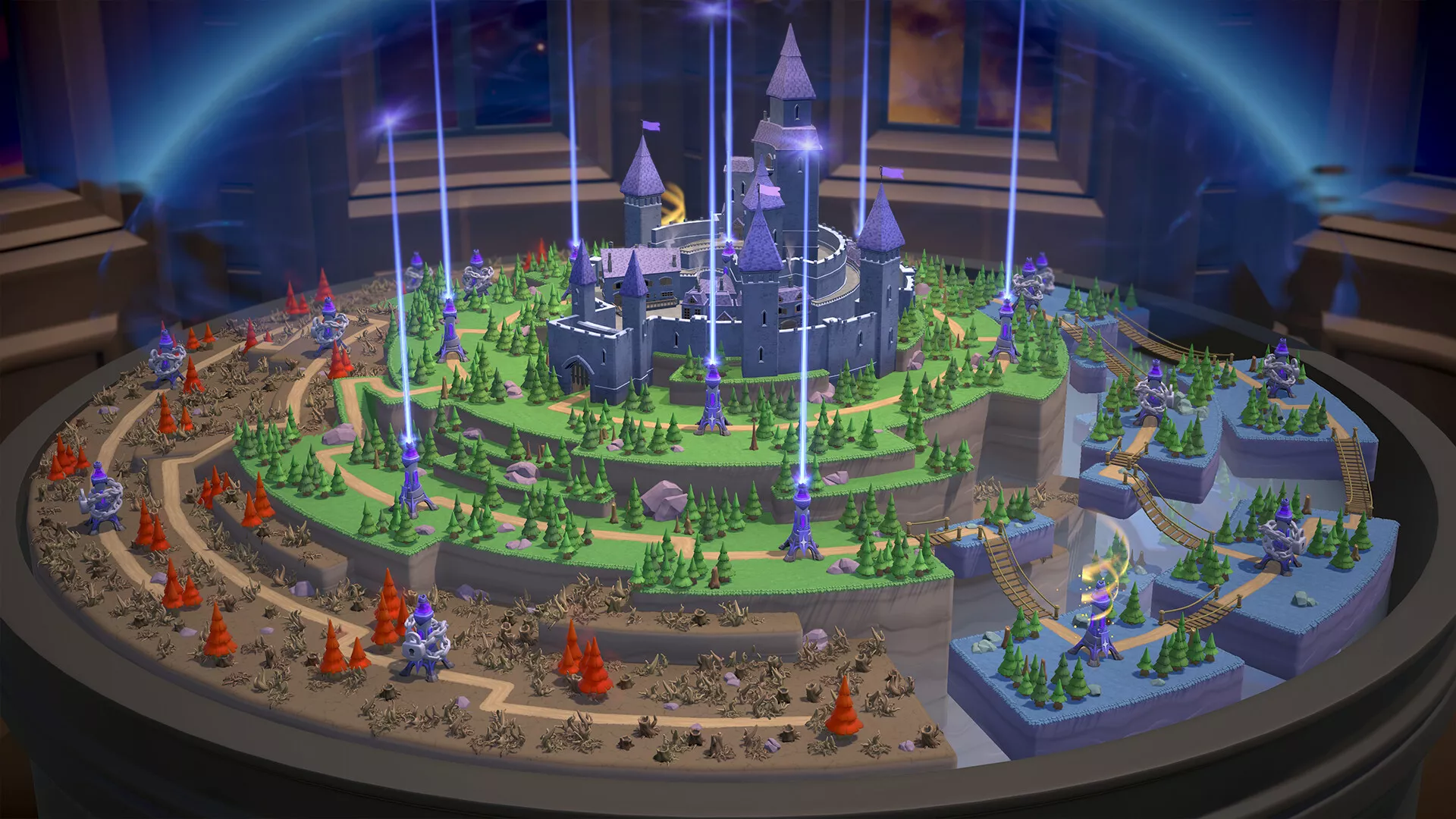 Cada una de las tres regiones de Arborglen permite ampliar tus estrategias defensivas.