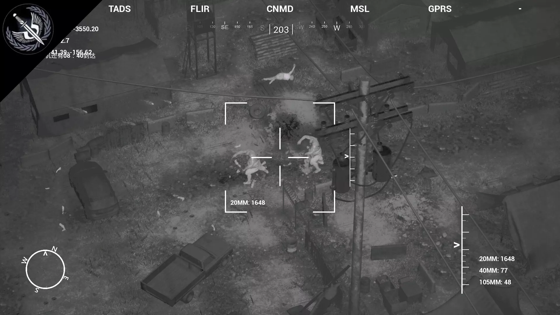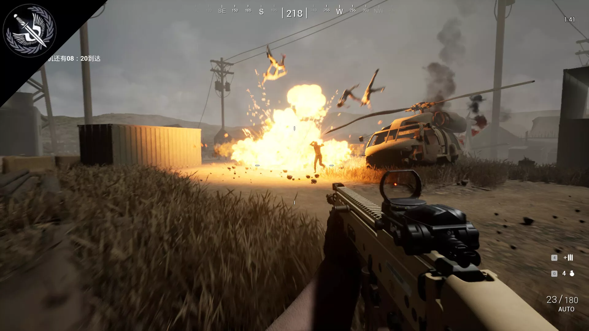 Modo de evacuación, cooperación multijugador: El operador de control de fuego del AC130 proporciona apoyo de fuego desde el aire. El equipo táctico terrestre mantiene su posición y espera la llegada del helicóptero de evacuación para completar la evacuación.