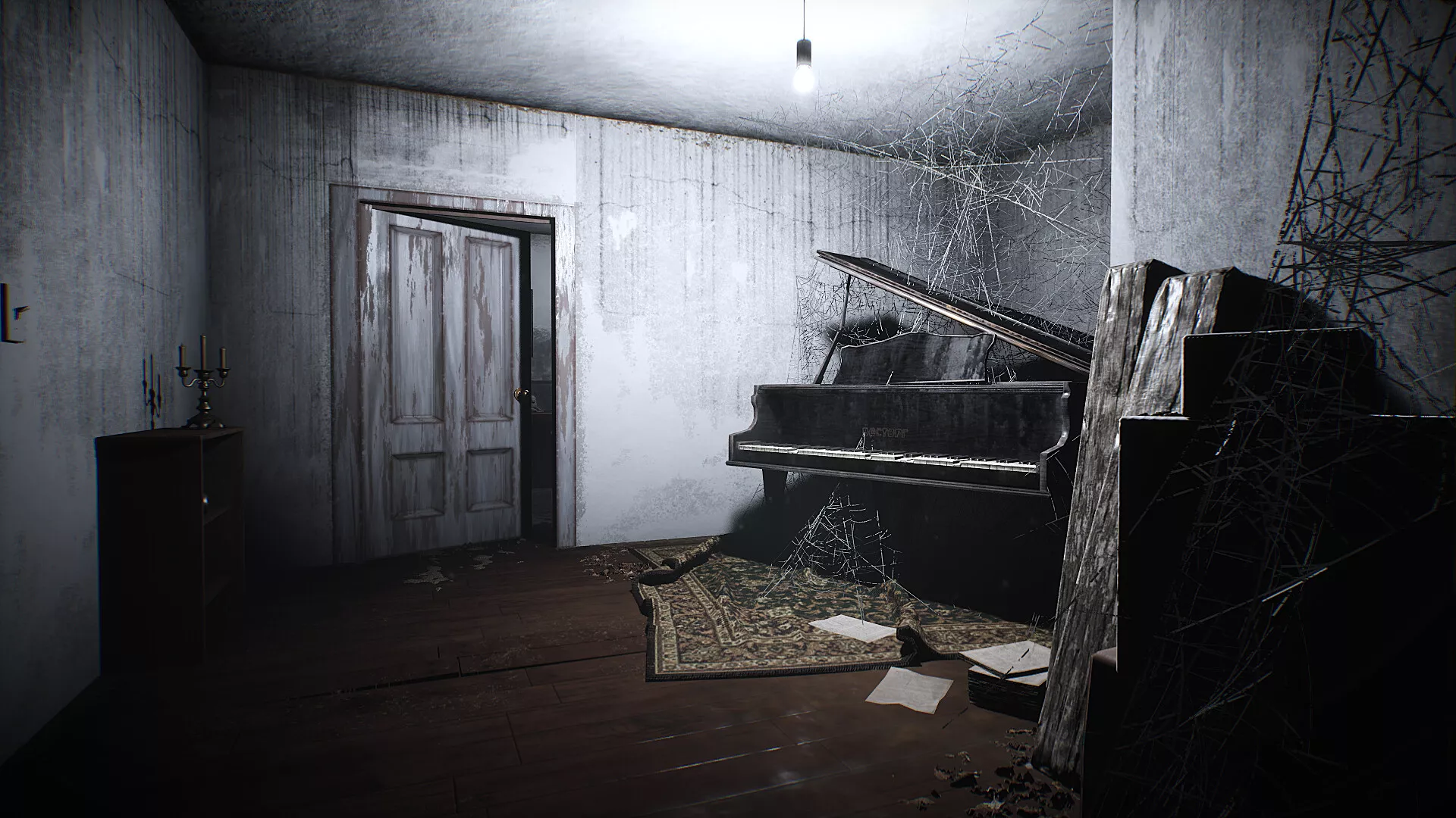Explora pasillos interminables y habitaciones cargadas de simbolismo, mientras una presencia sobrenatural te observa desde las sombras. La arquitectura, el sonido y la oscuridad conspiran para desdibujar los límites entre lo real y lo imaginado.
