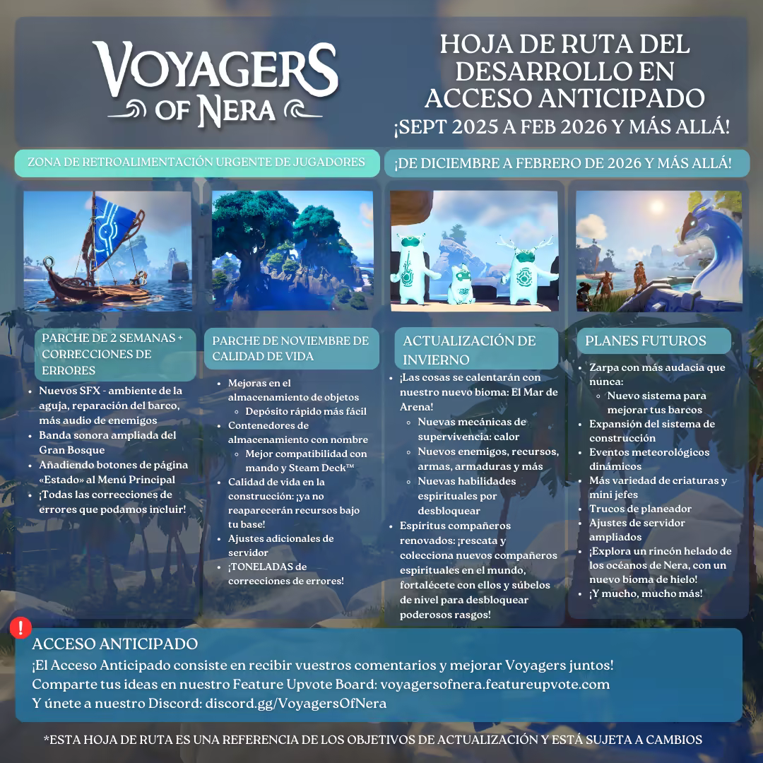 Sabemos que los buenos juegos deben contar con la opinión de los jugadores, por eso llevamos realizando pruebas cada dos semanas desde mediados de 2025. El acceso anticipado nos permite recibir comentarios de muchos más jugadores, lo que nos ayuda a mejorar y pulir el juego. Nos encantaría conocer tu opinión a través de la encuesta del juego, en Steam o en nuestro Discord. ¡Gracias a todos los que habéis jugado por apoyarnos y ayudarnos a mejorarlo!